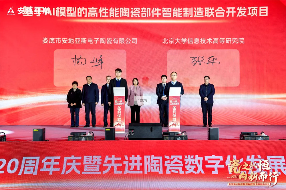 活動中,在市領導和各位嘉賓的見證下,安地亞斯與北大信息技術高等研究院簽約“基于AI模型的高性能陶瓷部件智能制造聯(lián)合開發(fā)項目”,與世界陶瓷科學院簽約“共建高性能先進陶瓷材料聯(lián)合實驗室”。北大信息技術高等研究院高級研究員、智能物聯(lián)軟硬件產(chǎn)業(yè)化實驗室主任易海明圍繞《人工智能賦能新型工業(yè)化》,世界陶瓷科學院院士、亞太材料科學院副院士林華泰圍繞《高性能氮化硅基陶瓷及零部件研究》,分享了最新的研究成果和實踐經(jīng)驗,共同探討人工智能、硅基陶瓷的最新進展、創(chuàng)新應用和未來趨勢,讓大家受益匪淺。