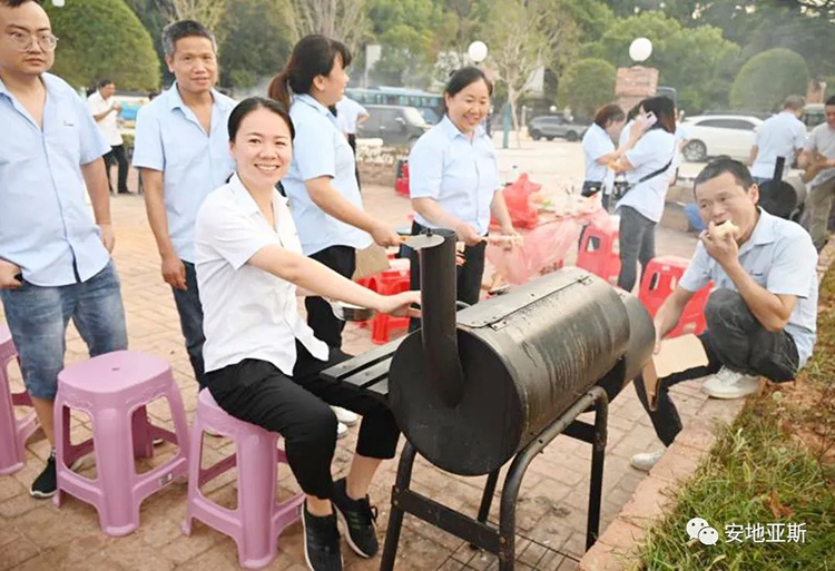 歡聲笑語(yǔ)隨著縷縷炊煙飄蕩在空中,大家烤的烤、扇風(fēng)的扇風(fēng)、刷料的刷料、準(zhǔn)備食材的準(zhǔn)備食材、吃的吃、喝酒的、喝可樂的不忘舉杯對(duì)飲,短短2個(gè)小時(shí),大家相互協(xié)作,相互探討又相互調(diào)侃,整個(gè)場(chǎng)面是如此的和諧、放松而又自在,將所有的不愉快和壓力統(tǒng)統(tǒng)甩到了一邊。